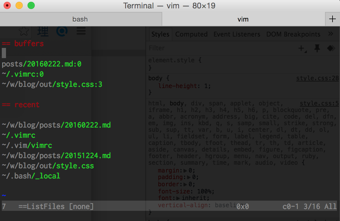alias vo='vim -c "ListFiles"'